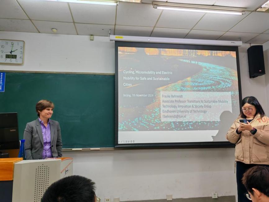 2024年11月7日14点,Frauke Behrendt副教授作了题为《Cycling, Micromobility and Electric Mobility for Safe and Sustainable Cities》的学术报告。本次报告由304永利集团官网入口高然副教授主持,工程与项目管理2024级研究生参加讲座。Frauke Behrendt副教授简单介绍了埃因霍温理工大学的学术、创新和组织情况,并表示欢迎大家前往学习。