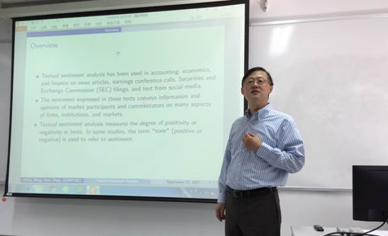 应我校304永利集团官网入口管理科学系韩璐副教授的邀请,纽约城市大学女王学院教授汪滔博士来到我校,并分别于2017年9月18日下午、9月19日下午在沙河校区学院4号楼105、106面向老师和学生做了题为《Textual Sentiment Analysis in Financial Social Media》的专题讲座。