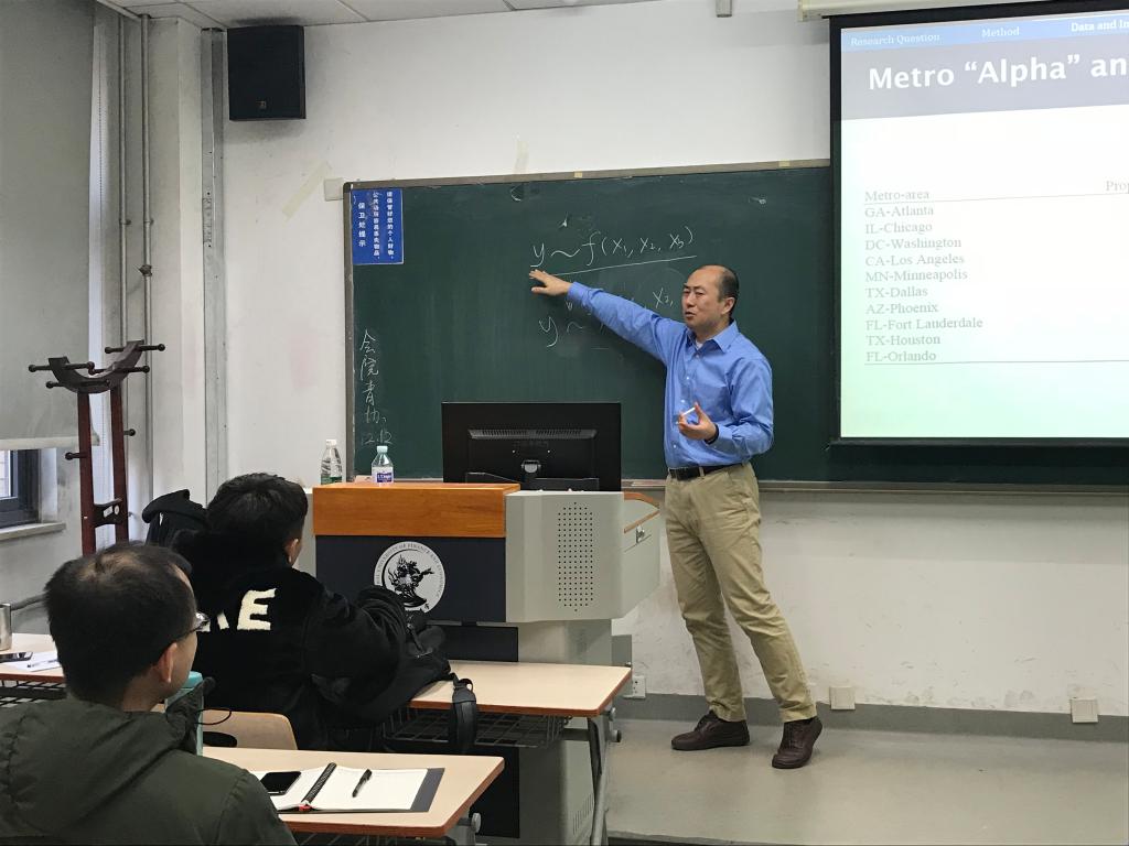 12月13日,宾夕法尼亚州立大学斯梅尔商学院风险管理系彭亮副教授在沙河校区4号楼110教室,为永利集团官网17级房地产专业研究生、部分博士生讲授《Benchmarking Local Commercial Real Estate Returns》课程。彭副教授从统计学和经济学的角度讲述如何克服细分商业地产市场交易样本过少的问题,并构建相应的房地产市场指数。院长李文斌教授、副院长陈俊华副教授、城市与房地产系主任王志锋教授及多位老师也参与了这次授课。
