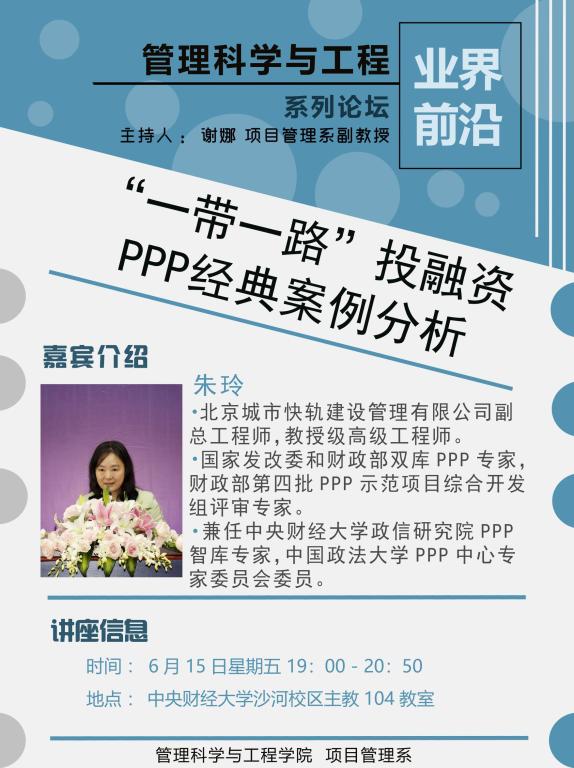 讲座预告:PPP项目投融资与商业银行PPP实践