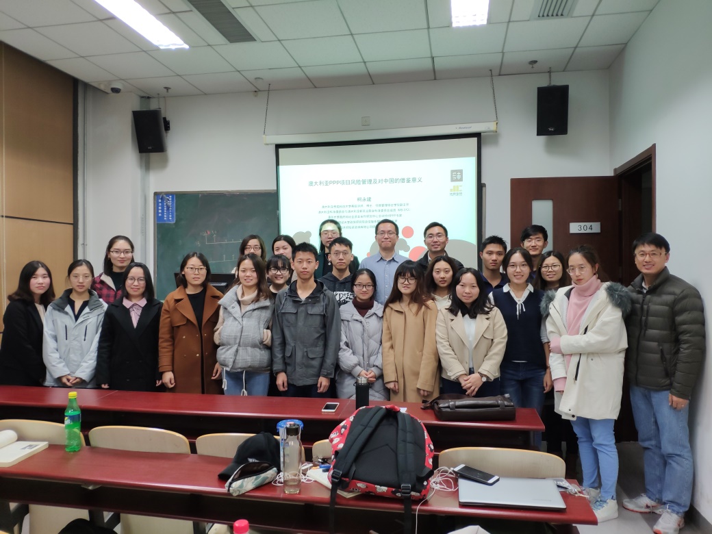 2018年11月12日晚6:30-8:20,澳大利亚悉尼科技大学高级讲师、博士、项目管理硕士学位副主任,澳大利亚标准委员会与澳大利亚新西兰联合标准委员会成员(MB-012),清华大学政府和社会资本合作研究中心全球特约PPP专家,304永利集团官网入口政信研究院政信智库暨PPP智库专家,上海济邦投资咨询有限公司研究院访问院长柯永建老师应邀到访,在沙河校区主教304进行了题为《澳大利亚PPP项目风险管理及对中国的借鉴意义》的讲座,由工程管理系副教授汪涛老师主持。