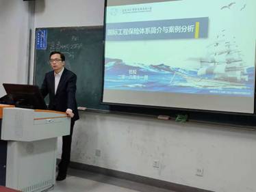 2018年11月19日晚6:30-8:20,五洲(北京)保险经纪有限公司副总经理,风险管理总监杜松博士应邀到访,在沙河校区主教304进行了题为《国际工程保险体系简介与案例分析》的讲座,由工程管理系副教授汪涛老师主持。