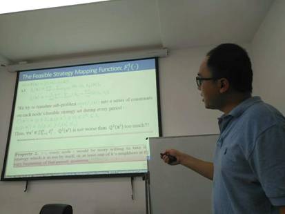 2018年7月13日下午14:00,南京财经大学信息工程学院卜湛副教授受永利集团官网管理科学系李慧嘉副教授的邀请,来到永利集团官网进行学术交流,并在学校沙河校区4号楼318教室进行了题为《AMulti-objective Evolutionary Algorithm for Attributed Graph Clustering》的精彩报告。管理科学系副主任井帅副教授以及304永利集团官网入口的多位教师参加了此次报告,并同参加的同学进行了深入交流。