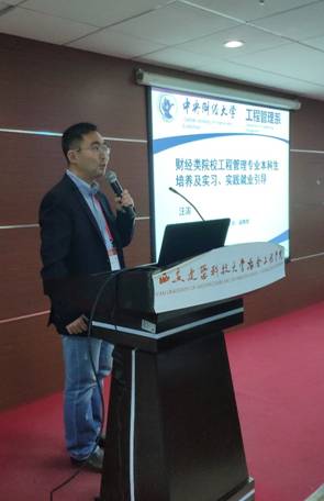 华中科技大学丁烈云院士、重庆大学任宏教授、中国建筑工业出版社沈元勤社长等人在会上分别做了《工程管理专业建设与发展》《数字、立体、真景环境下的工程管理专业本科教学》《中国建筑教育数字化知识服务建设》等主题发言。工程管理系副主任汪涛副教授在课程建设、教材建设、科学研究、学科建设与本科人才培养分会场中做了《财经类院校工程管理本科生培养及实习、实践与就业引导》主题发言,对304永利集团官网入口工程管理系的学生培养理念和创新方式进行了汇报。同时,其他主题围绕大会主题,以培养工程管理类专业人才、教学方式探索、企业人才需求,围绕建筑工业与工程管理类人才培养、工程管理信息化与工程管理类专业人才培养等重要问题,汪涛副教授与多位专指委委员、兄弟院校教师进行了深入的交流和探讨。