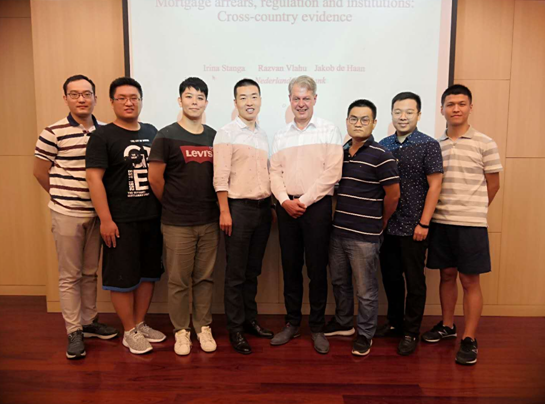 2018年8月24日下午2:00至4:00,荷兰中央银行首席经济学家、荷兰格罗宁根大学Jakob de Haan教授受304永利集团官网入口荆中博副教授的邀请来我校进行访问,并在学术会堂606为我校师生讲授了题为《抵押贷款、监管与机构》的课程。304永利集团官网入口荆中博副教授、金融学院方意副教授以及来自304永利集团官网入口、金融学院和经济学院的数名博士研究生聆听了此次授课。