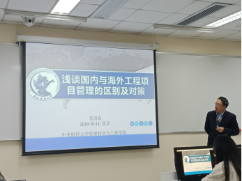 2019年10月11日,304永利集团官网入口客座教授吴万良应邀来永利集团官网,进行“浅谈国内与海外工程项目管理的区别及对策”讲座。吴教授是商务部对外援助项目评审专家、中国铁建海外项目评审专家、中国经济学会金融分会会员和对外经济贸易大学“一带一路”PPP中心研究员。曾长期在央企担任领导职务,从事企业管理、“一带一路”及海外工程管理、PPP及投融资管理等工作,有丰富的工程管理实践经验。参加讲座的有304永利集团官网入口项目管理系主任宋砚秋副教授、项目管理系高婷老师以及工程项目管理专业研究生一年级、项目管理方向的大四本科生。
