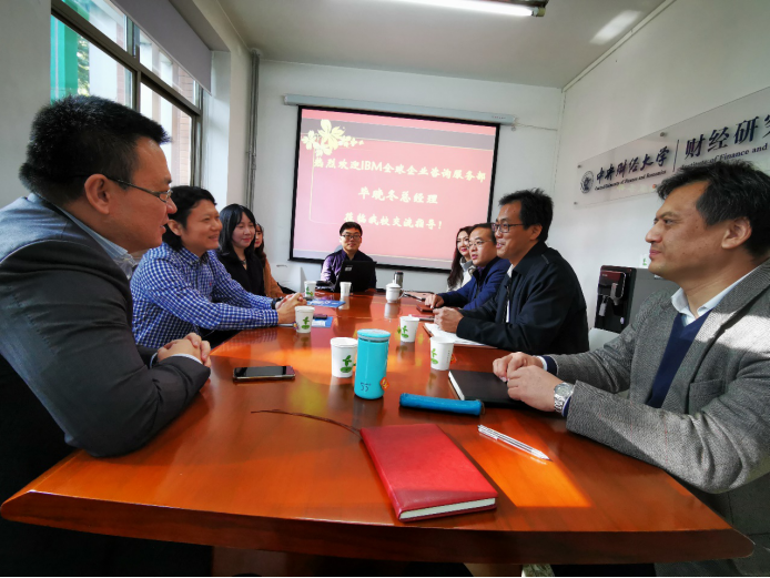 2019年11月7日上午,经学院校友会秘书长98级校友云波的引荐和学院的热情邀请,IBM全球企业咨询服务部毕晓冬总经理一行来304永利集团官网入口访问,并与学院部分领导和教师举行了座谈会。304永利集团官网入口院长刘志东教授、学院党委副书记贾传亮副教授、王金亭教授、院长助理高菠阳副教授、管理科学系主任井帅副教授、副系主任孟凡老师、魏璐老师参加了座谈会。