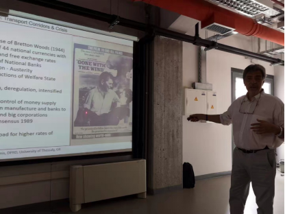 6月21日上午,访学团前往色萨利大学经济学院教室,Eliou教授以Egnatia Motorway: Monitoring the developmental, spatial, environmental and transport impacts of the construction and operation为课题对希腊的高速公路进行了详细阐述。同学们在讨论时间对Eliou教授讲授的内容提出了自己的意见与问题,Eliou教授对此一一做了回答。下午,Adamakis教授继续为访学团讲授Industrial heritage: Preserving and re-using of old industrial manufacturing buildings in Volos,并在讲授完沃洛斯的工业文化遗产后,陪访学团参观了Industrial Museum of Tsalapata,让我们实地感受到了希腊的工业文化。