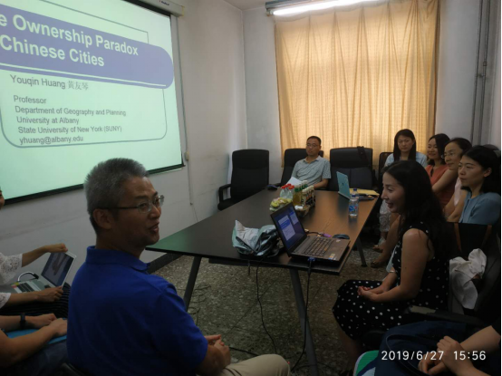 ❖2019年6月27日下午及晚上,美国纽约州立大学奥尔巴尼分校地理与规划系黄友琴(Youqin Huang)教授应邀来我校学院南路图配楼404会议室进行学术访问和参加人口与房地产学术研讨会。该会议由永利集团官网易成栋教授主持,同时邀请了中国社会科学院城市与环境研究所副研究员董昕、中国科学院大学管理学院副教授李秀婷、304永利集团官网入口中国金融发展研究院副研究员李晟、首都经贸大学助理教授杨欣桐以及永利集团官网部分师生参与了此次研讨会。