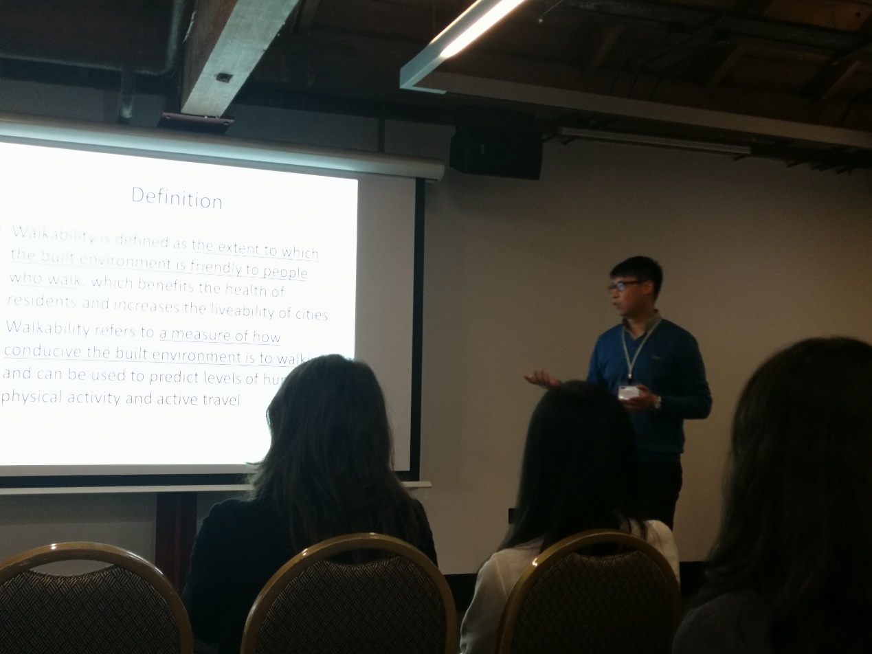 第一天,参加了大会开幕式,聆听了大会主题演讲,参与了多个关于城市与区域发展主题的平行分论坛的讨论。第二天,参加了关于可持续发展等主题的平行分论坛,与国内外学者进行了交流讨论。第三天,参加了城市宜居性、城市更新等与本人研究方向紧密相关的平行分论坛,聆听报告并参与讨论。在Livable urban communities分论坛进行了题为“Assessment of livable urban communities: From the perspective of walkability(城市社区宜居性评估:以可步行性的视角)”主题发言。引起了分会场中多位专家学者的关注,对论文的研究背景、理论方法和研究结论进行了详细的讨论,并提出了建设性的意见,这些意见可为将此会议论文形成期刊论文提供良好的建议与思路。第四天,参加了关于国际基金联合申请的大会主题论坛,聆听了王亚平、吴缚龙、Cecilia Wong等领域内最有影响力的学者们探讨如何在国际联合基金申请中获得成功,对未来研究工作的开展带来很多新的思路和方法。第五天,参加了关于可持续城市化的大会主题论坛,主讲嘉宾从不同国家和地区分享了各自的城市化实践经验,并与听众展开了热烈讨论。与会期间,还与英国曼彻斯特大学城市研究院的负责人探讨了未来在学生交换、科研合作等领域的合作前景,为今后的合作奠定了基础。