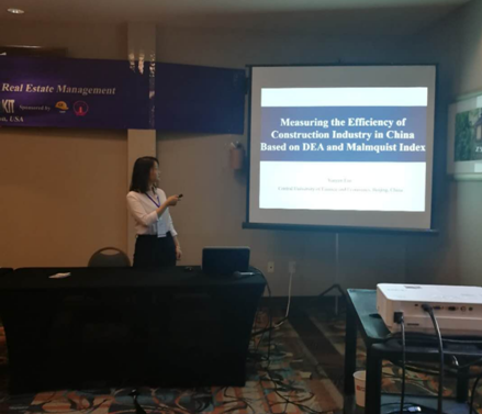 樊妍妍同学进行了10-15分钟的学术汇报,主题为“Measuring the Efficiency of Construction Industry in China Based on DEA and Malmquist Index”。该论文以我国31省、自治区、直辖市为研究对象,以2006-2015年的统计数据为基础,以《国家统计年鉴》及《建筑业统计年鉴》为数据来源,运用DEA模型对我国建筑业效率进行静态投入产出分析,此外,引入了Malmquist指数对建筑业效率进行动态评价分析,从而更加全面的反映我国建筑业效率水平。樊妍妍同学从研究背景、研究方法、研究结果及结论四个方面介绍了自己的论文,并回答了一些学者所提出的问题,虚心接受他人提出的建议。