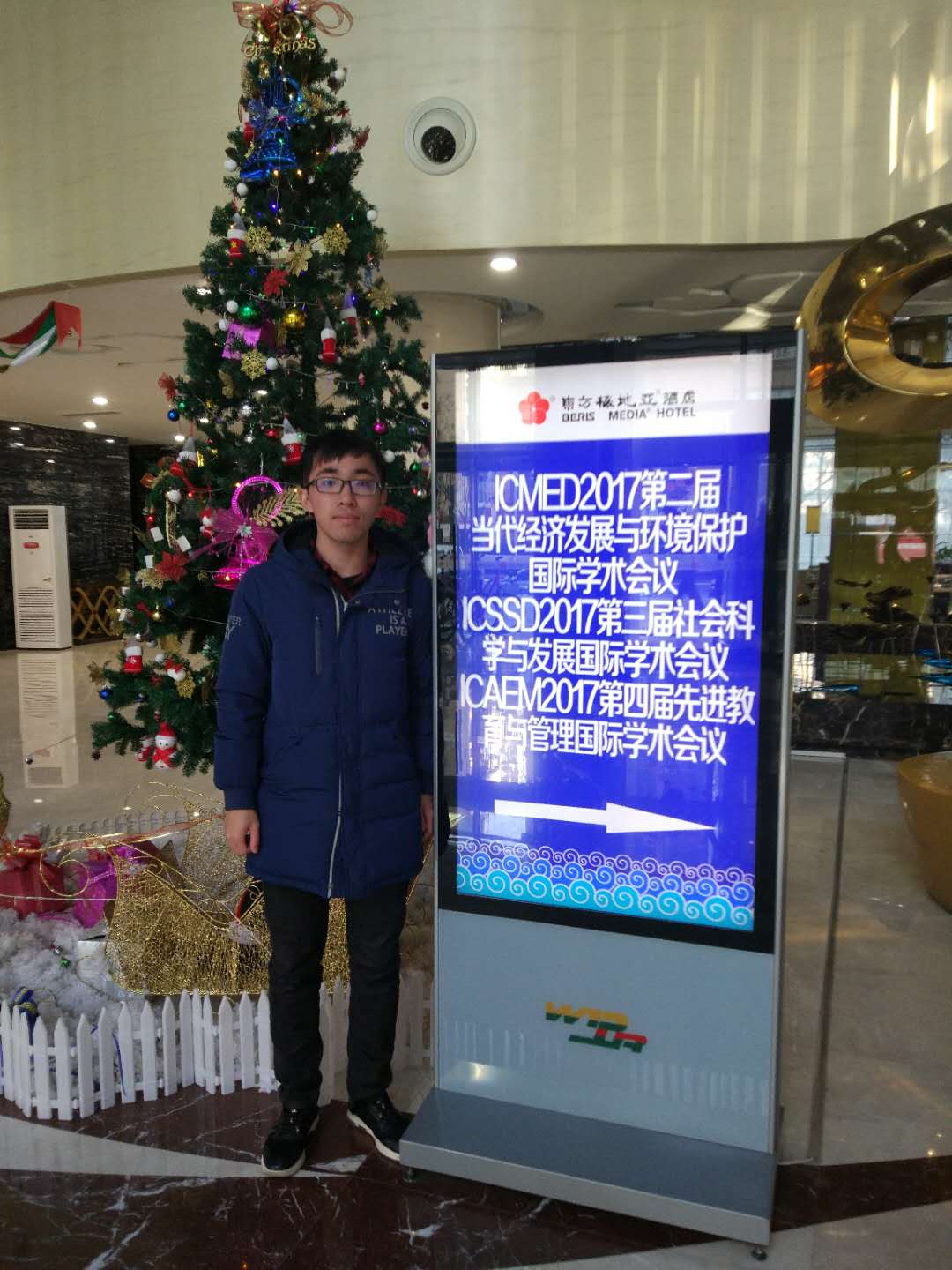 为了积极响应学校进行国际学术交流的倡议,2017年12月17日,永利集团官网邱健洋同学赴青岛参加了“第三届社会科学与发展国际会议(CPCI)-ICSSD 2017”。该会议是由美国Advanced Information Science Research Center主办的。大会涉及的研究领域和交流主题包括人文、经济、金融、可持续发展、教育等。大会的主要目的是为了促进各地方、各领域学者的交流,为社会科学及社会发展相关领域的学者、研究人员,提供前沿性研究交流、学术讨论的国际平台,以达到学术成果共享,成果应用的目的。