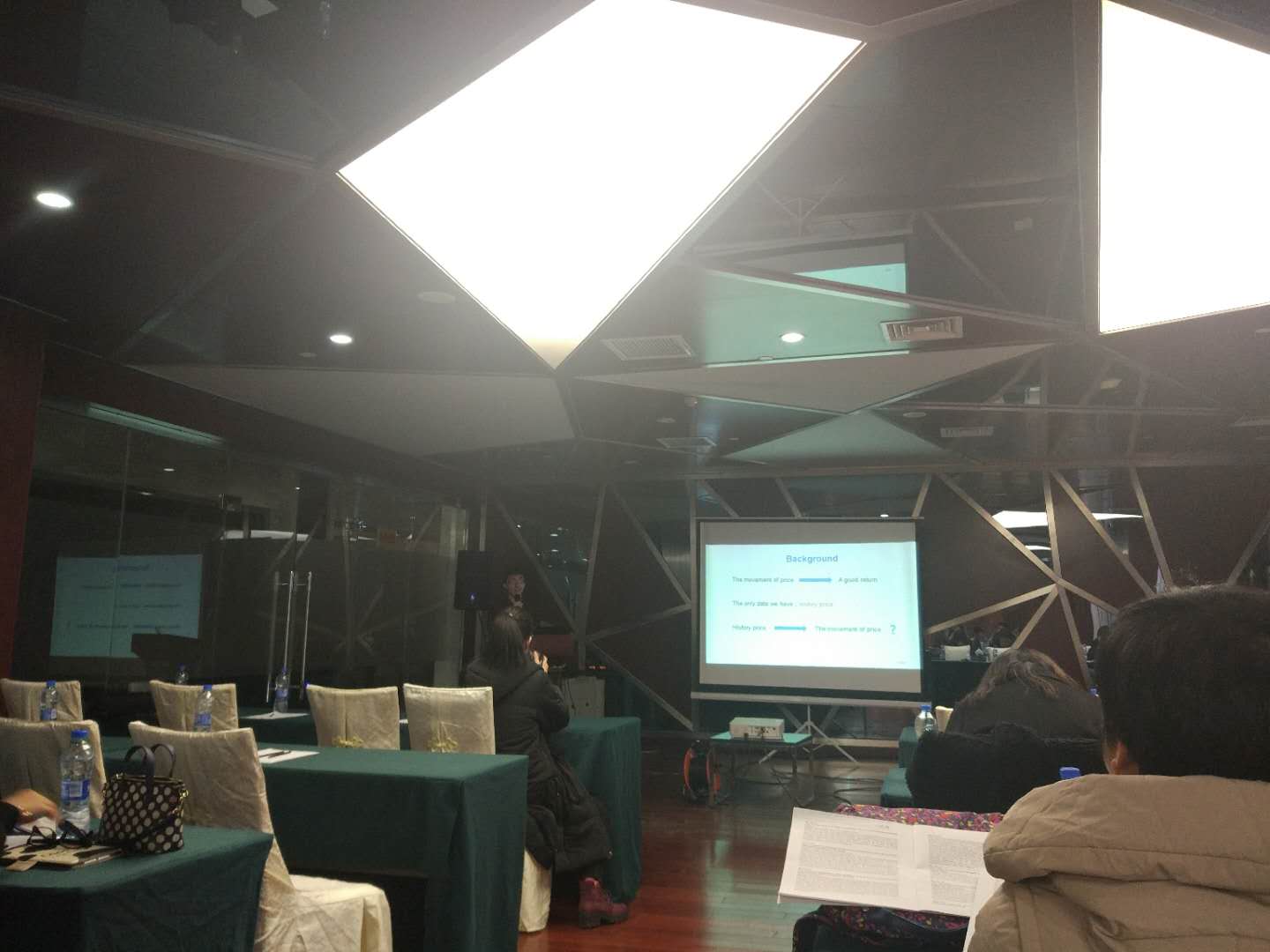 在这次会议上,邱健洋同学被安排做10到15分钟的口头学术报告,所汇报的论文题目为“The SME Board Stock Price Trend Analysis and Investment Strategy under the Fractal Market Hypothesis”。文章重点研究股票价格走势和策略分析,主要讲的是在分形市场假设之下,运用分形理论预测未来股票价格走势,并依据相关数值指标提出股票投资策略。邱健洋同学在汇报中介绍了自己的研究过程和研究成果,并回答了一些学者提出的问题,虚心的接受他人的建议。